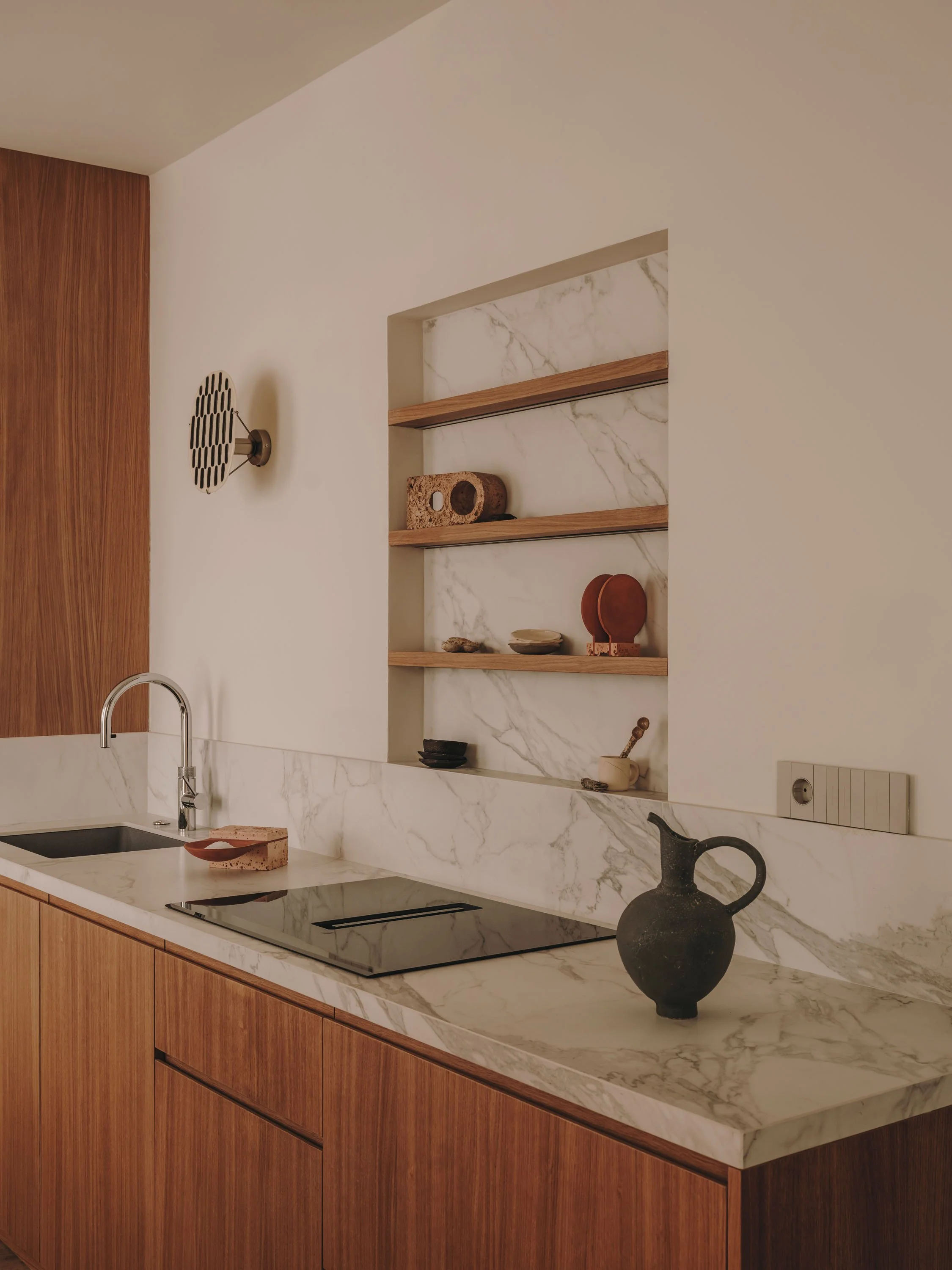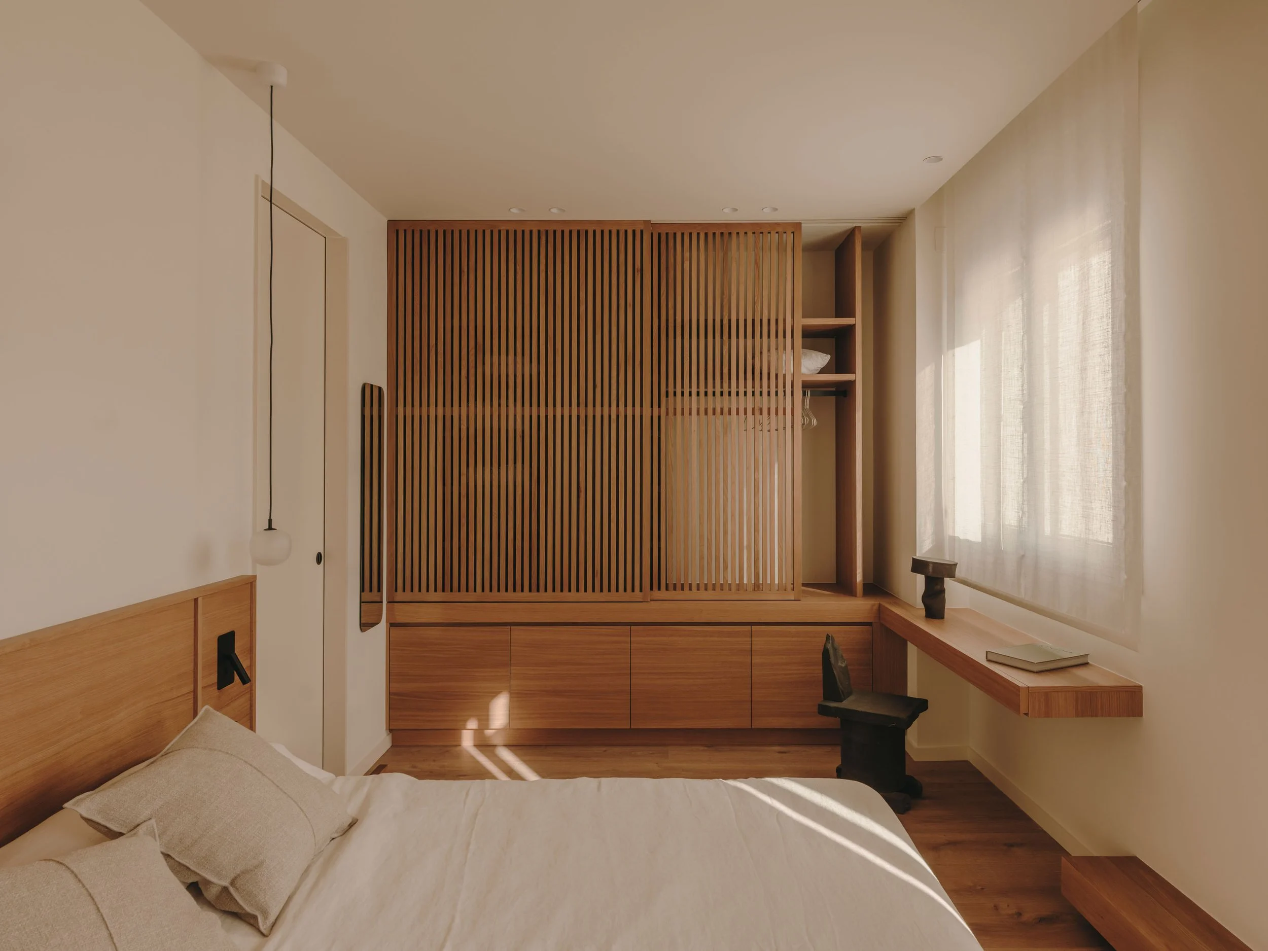 Every detail of this penthouse has been meticulously custom-designed to maximize its spaces, using noble materials and elements that echo the winding streets of the owners' hometown.
